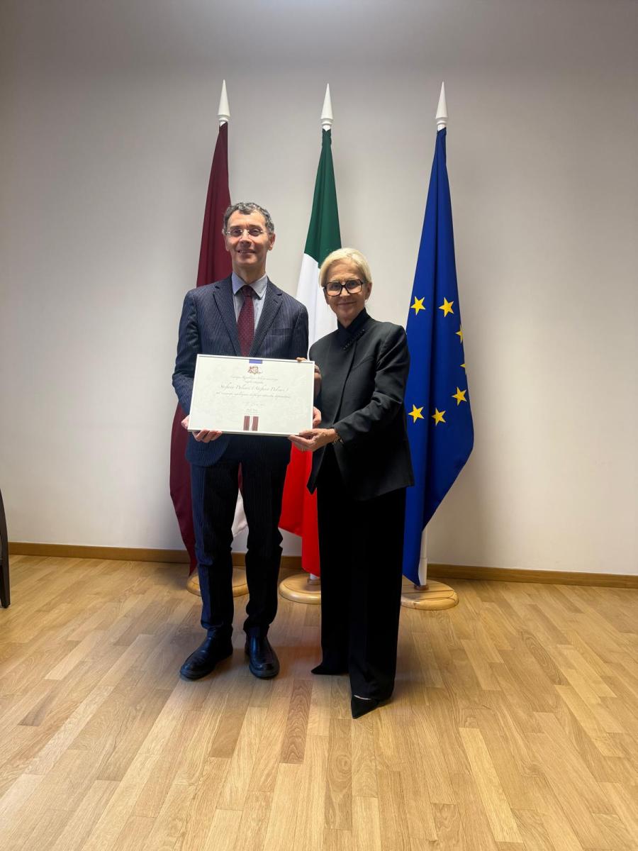 L’onorificenza è stata consegnata da Elita Gavele, Ambasciatrice della Lettonia a Roma, alla presenza di rappresentanti del mondo accademico, diplomatici e membri della comunità lettone.