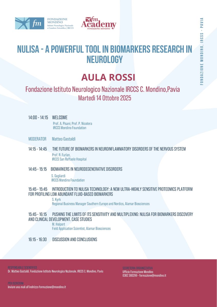 14 ottobre 2025 - Fondazione Mondino - Istituto Neurologico Nazionale IRCCS di Pavia - Seminario NULISA